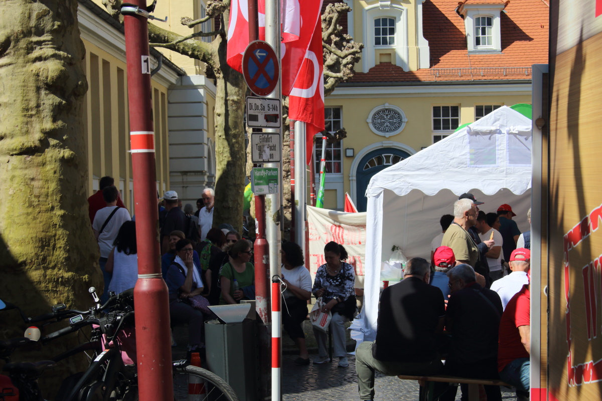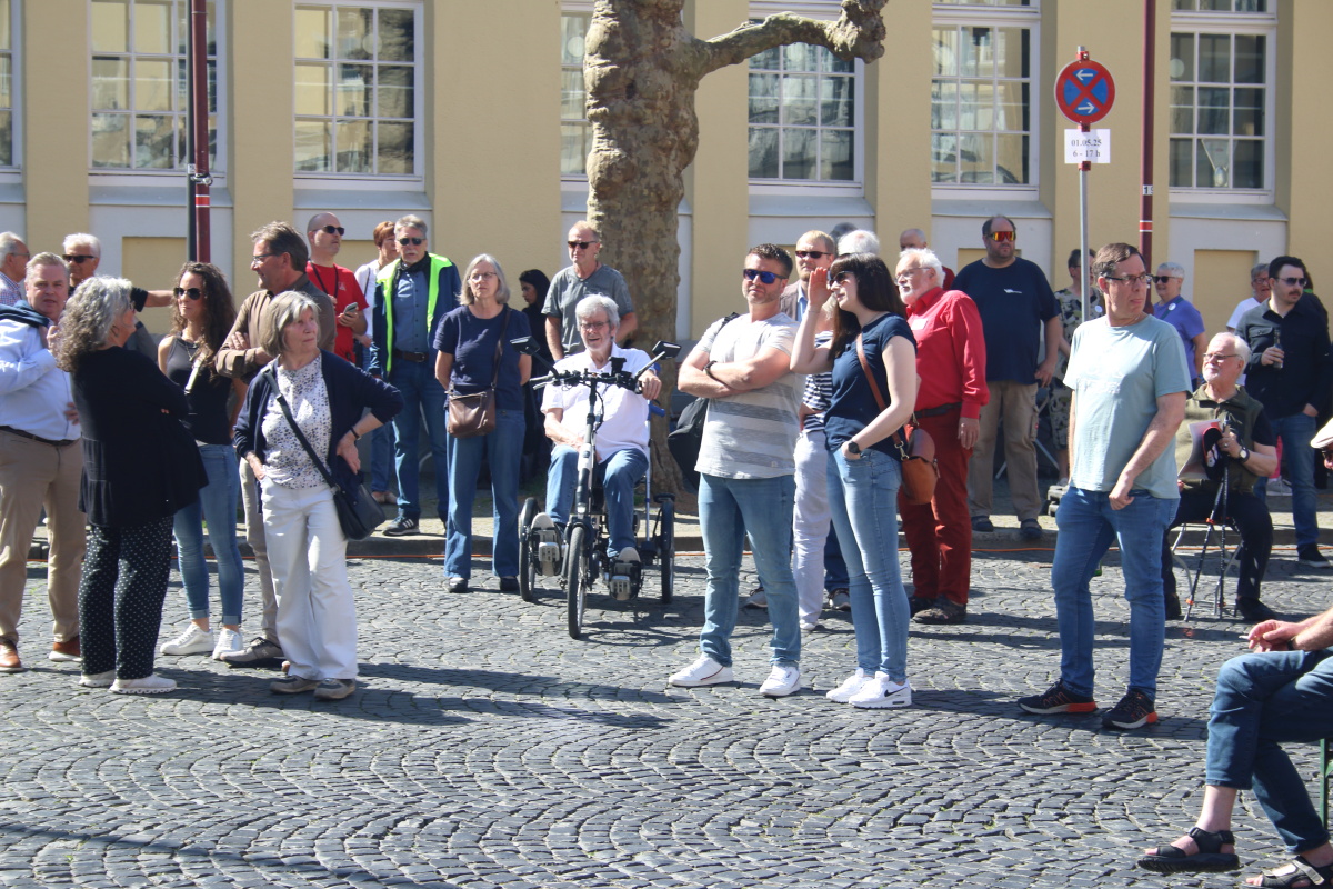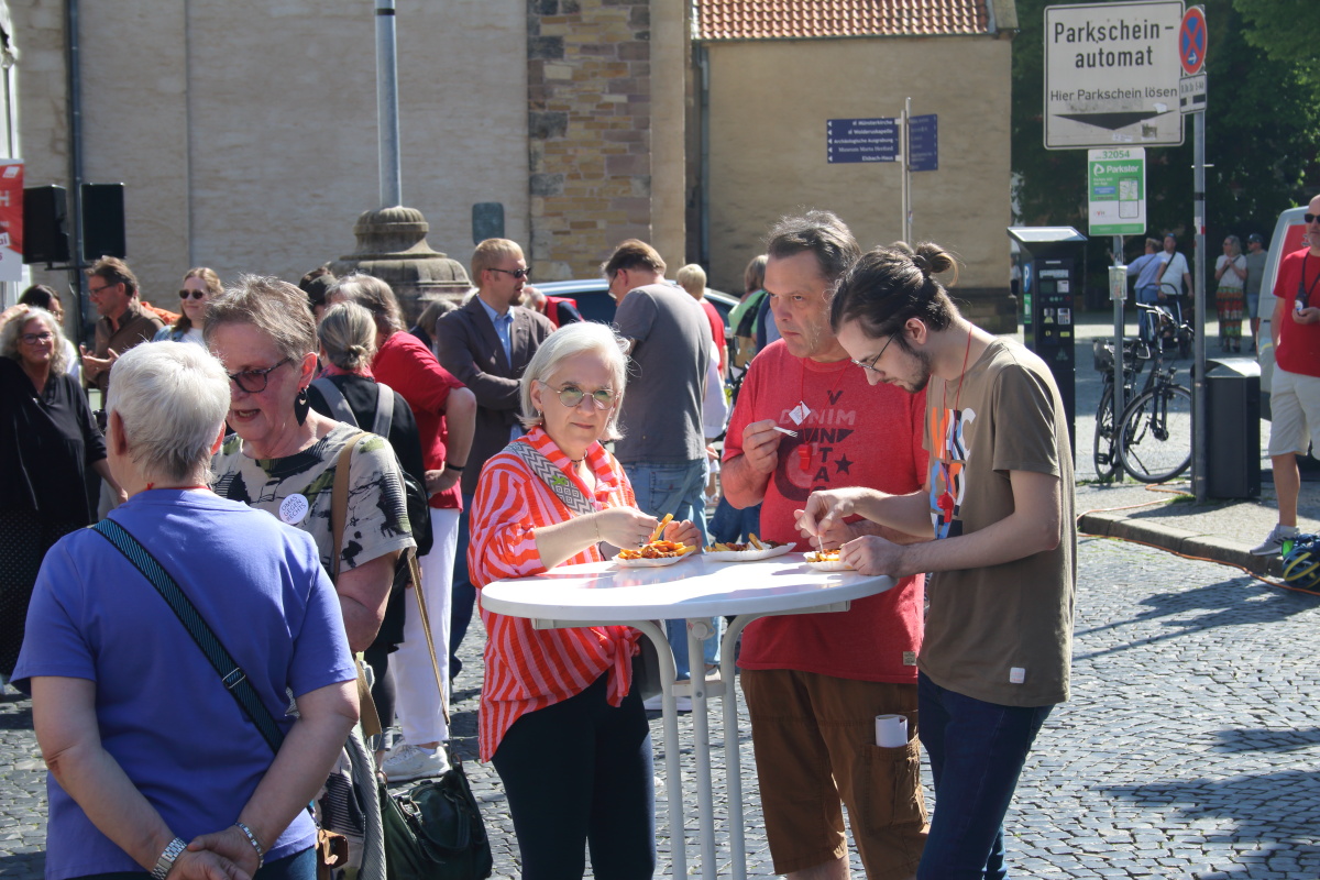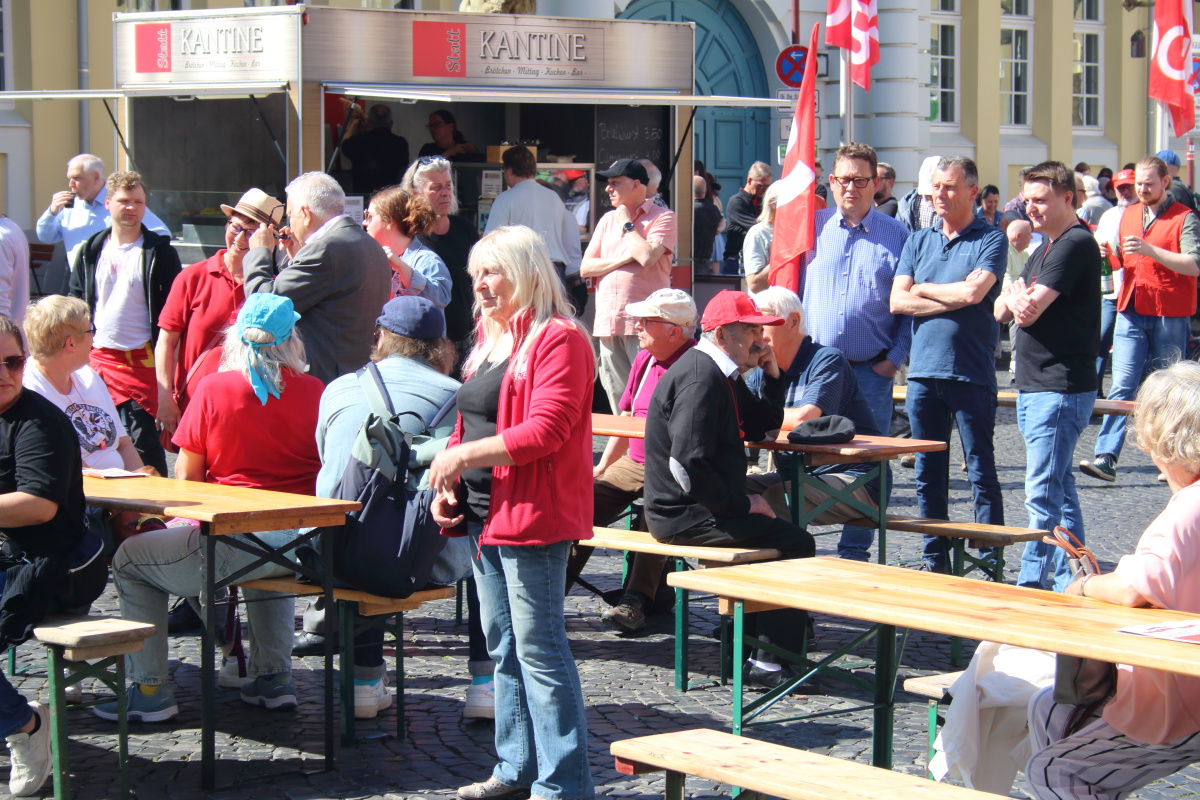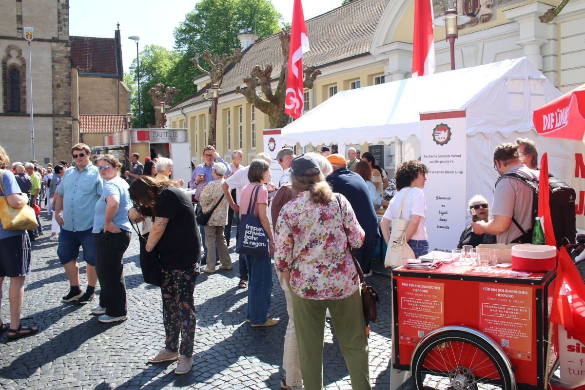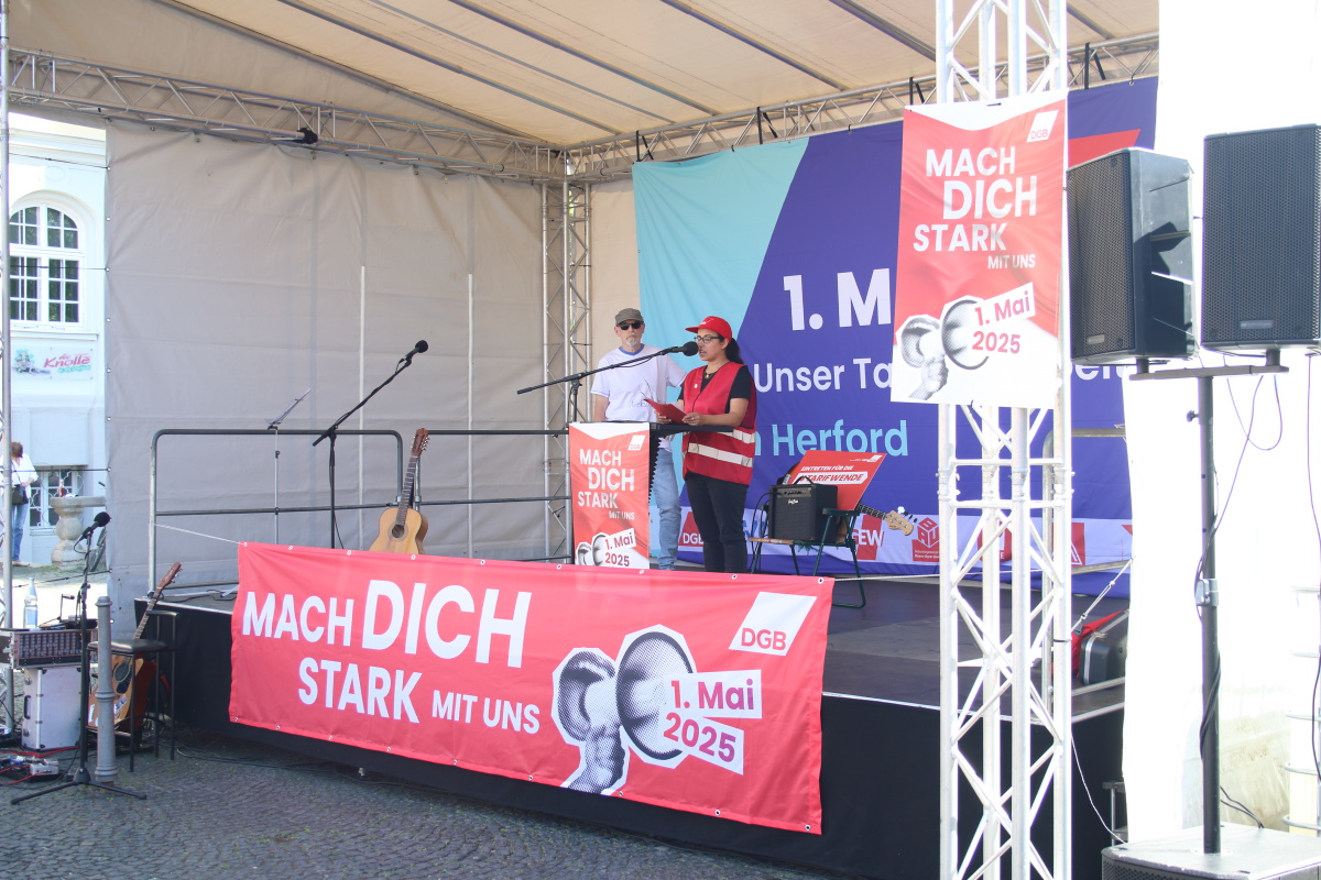Zwei junge Metallerinnen freuen sich in der Menschenmenge